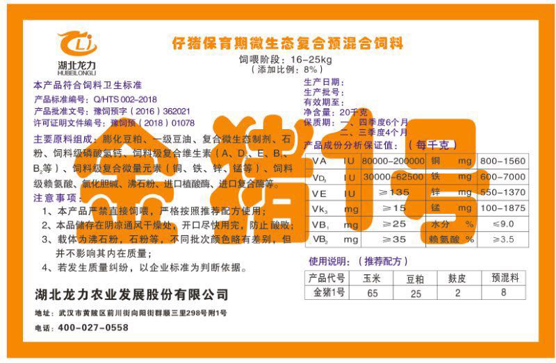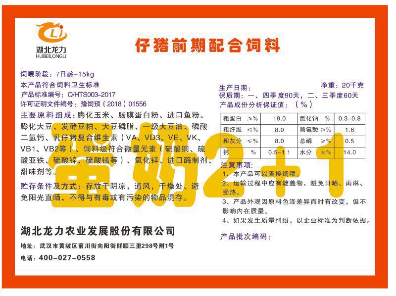 湖北龍力農(nóng)業(yè)發(fā)展股份有限公司坐落于武漢市黃陂區(qū)前川街向陽(yáng)街群順三里298號(hào)附1號(hào)。公司成立于2014年6月,公司自成立以來(lái)把“創(chuàng)全球最大養(yǎng)豬綜合服務(wù)”為企業(yè)愿景。致力于打造教保料品牌”作為公司發(fā)展的明確目標(biāo)。公司一直致力于豬營(yíng)養(yǎng)的研究和開發(fā),積極與國(guó)內(nèi)外高校和科研機(jī)構(gòu)合作,推廣養(yǎng)豬技術(shù)、動(dòng)物營(yíng)養(yǎng)新概念,向世界農(nóng)牧企業(yè)學(xué)習(xí)與合作。公司采用國(guó)內(nèi)先進(jìn)的生產(chǎn)工藝,選擇高精度電子配料秤,高均勻度、無(wú)殘留混合機(jī)等先進(jìn)設(shè)備....